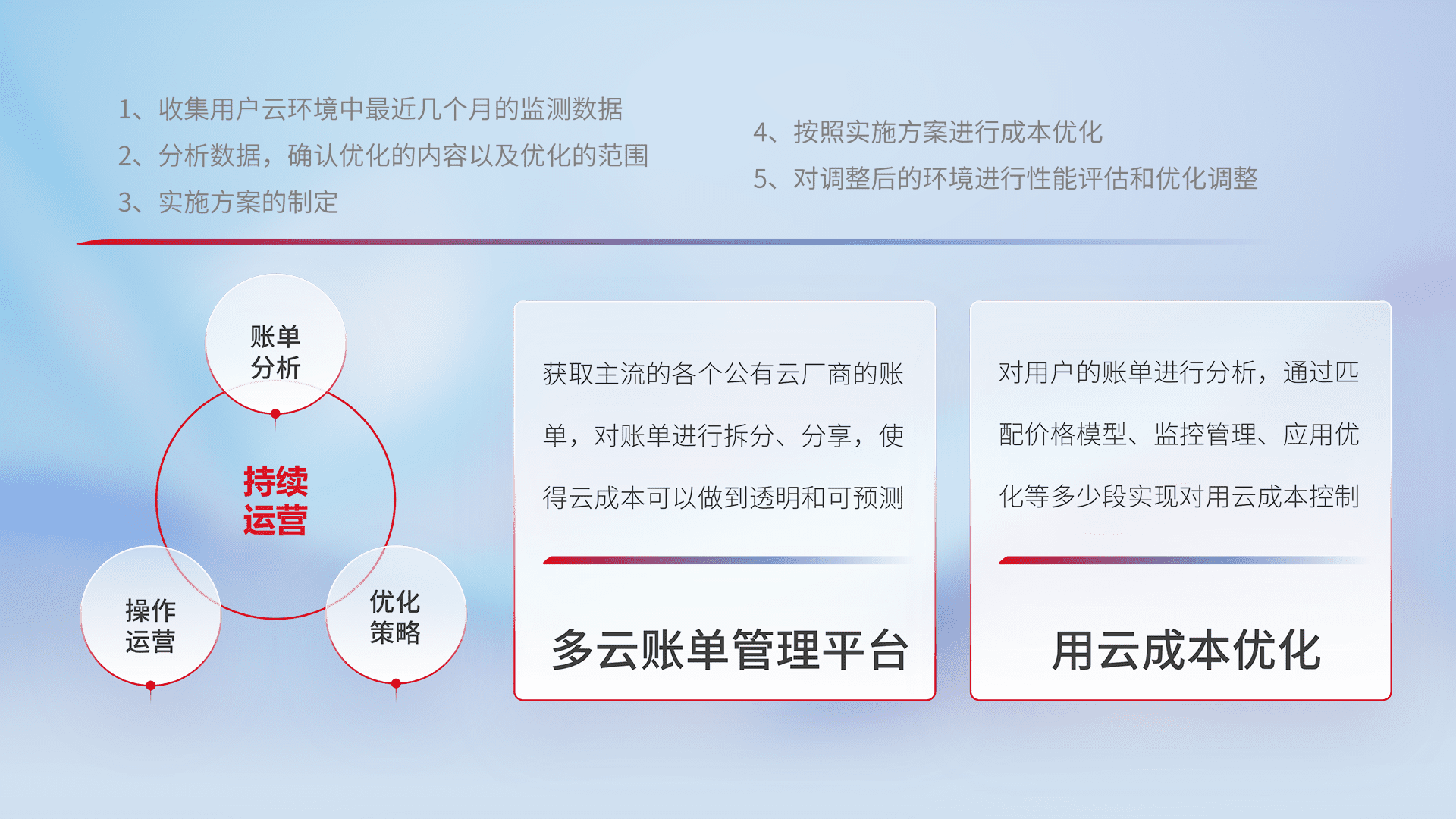 运用智能化工具分析云资源,,,提供日常费用可视化工具,,,,自动账单拆分,,,,成本优化云上费用,,,,降本增效。。。